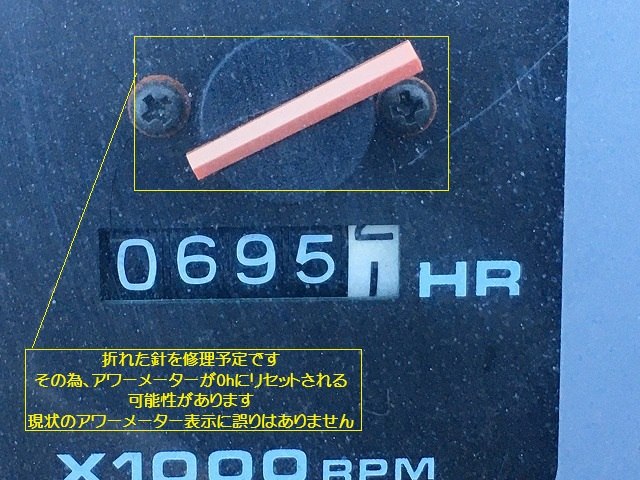 ●アワーメーターは696hですが、修理箇所の部品を交換する関係上、アワーが0hにリセットされる可能性があります。